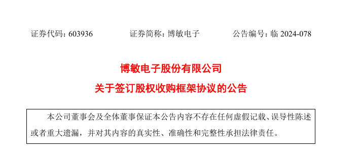 2024年9月,博敏電子為培育優質外協供應商,優化并提高公司外協服務采購的效率與品質,降低外協采購的成本,公司與奔創電子之股東熊冬梅女士于2024年9月20日簽署《關于梅州市奔創電子有限公司的收購框架協議》(以下簡稱“《框架協議》”)。博敏電子擬以現金不超過人民幣25,000萬元收購奔創電子86.8535%的股權。若收購事項完成,公司將持有奔創電子100%的股權,奔創電子將成為公司的全資子公司。