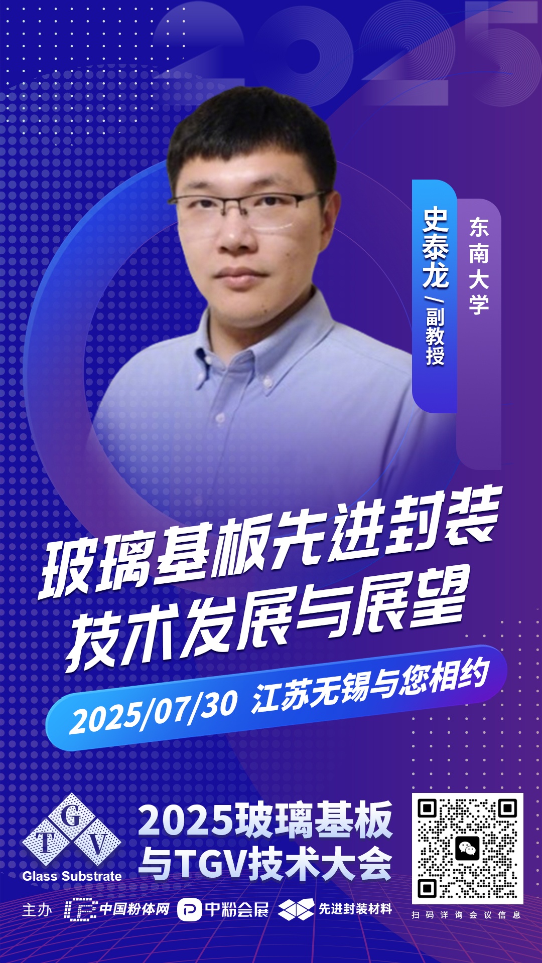為強(qiáng)化行業(yè)信息交流,中國粉體網(wǎng)將于2025年7月30日在無錫舉辦2025玻璃基板與TGV技術(shù)大會。屆時,東南大學(xué)集成電路學(xué)院副教授史泰龍將作題為《玻璃基板先進(jìn)封裝技術(shù)發(fā)展與展望》的報告,分享其關(guān)于玻璃基板的最新研究。