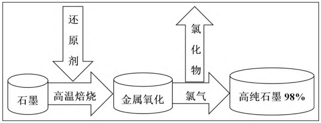 高溫法是根據石墨和雜質礦物沸點不同這一原理將石墨通入含惰性氣體的純化爐中加熱到一定溫度(通常在2700℃左右)并維持一段時間后,沸點低的硅酸鹽雜質礦物在高溫下被氣化排出而實現石墨純化的。