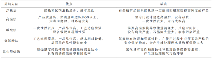 高溫法提純微晶石墨固定碳含量可高達99.995%,但是電加熱技術要求嚴格,生產成本高,目前使用高溫法提純微晶石墨還鮮有報道,而用于鱗片石墨的提純則相對較多。