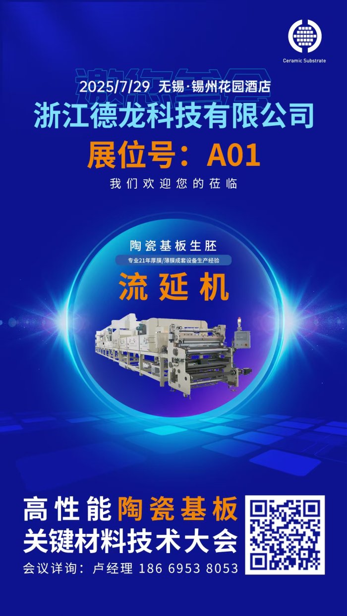高性能陶瓷基板關(guān)鍵材料技術(shù)大會(huì)將于2025年7月29日在江蘇無錫舉辦。浙江德龍科技有限公司作為參展單位邀請(qǐng)您共同出席。