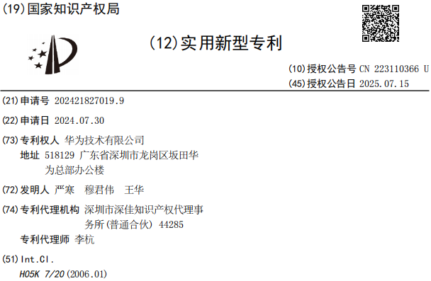 中國粉體網訊 近日,國家知識產權局信息顯示,華為技術有限公司一項名為“一種銅金剛石散熱基板”的專利正式獲得授權(授權公告號CN223110366U),申請日期為2024年7月,涉及散熱基板技術領域,旨在通過材料與結構創新突破高功率器件的散熱瓶頸。