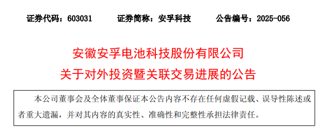 7月19日,安孚科技發(fā)布公告稱,決定終止控股子公司南孚電池與南平市綠色產(chǎn)業(yè)投資基金有限公司、高能時(shí)代(廣東橫琴)新能源科技有限公司(簡(jiǎn)稱:高能時(shí)代)的合資合作。