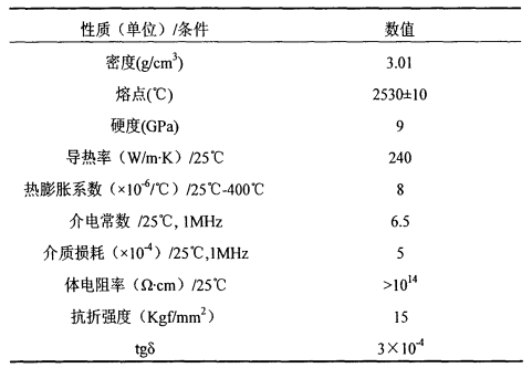 高的熱導率和低的介電常數是BeO陶瓷材料在電子技術領域得到廣泛應用的重要原因。BeO陶瓷目前已用于高性能、高功率微波封裝件、高頻電子晶體管封裝、高電路密度的多片組件。