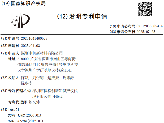中國粉體網訊 近日,國家知識產權局信息顯示,深圳中機新材料有限公司申請一項名為“一種用于金剛石襯底的精拋液及其制備方法、金剛石襯底的拋光方法”的專利,公開號CN120365854A,申請日期為2025年04月。