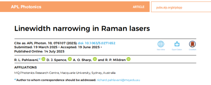 麥考瑞大學(xué)的研究人員,利用金剛石晶體和“拉曼效應(yīng)”實(shí)現(xiàn)了激光線寬的顯著壓縮,其效果相較于傳統(tǒng)方法提高了數(shù)千倍。拉曼效應(yīng),簡(jiǎn)單來(lái)說(shuō),就是激光光子激發(fā)材料內(nèi)部的高頻振動(dòng),并在與這些振動(dòng)相互作用后發(fā)生散射。這一過(guò)程就像一個(gè)神奇的“光譜濾波器”,能夠把原本不穩(wěn)定的激光凈化成更加干凈、穩(wěn)定的激光,從而有效壓縮激光線寬。