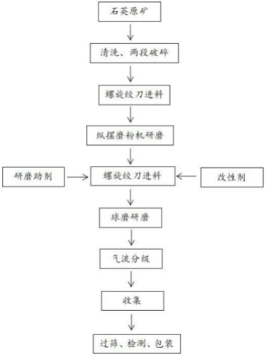 另外廣源化工等還公開了一種低電導率超細硅微粉及其制備方法和應用。此發明對原料進行一次濕式磁選,降低原料中的鐵含量;超細研磨時與物料接觸的設備均采用耐磨材料進行處理,防止鐵雜質的帶入;研磨后引入硅烷偶聯劑包覆進行分級,防止大顆粒團聚;分級后再次濕式磁選,控制硅微粉極低的鐵含量,保證了硅微粉極低的電導率。