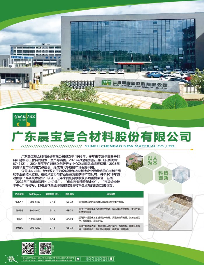 廣東晨寶復(fù)合材料股份有限公司成立于1998年,多年來專注于高分子料和精細(xì)化工材料的研發(fā)、生產(chǎn)與銷售。2023年成功登陸新三板(股票代碼:874212);2024年落子廣州建立創(chuàng)新研發(fā)中心及華南區(qū)域運營樞紐,2025年完成華北市場戰(zhàn)略支點建設(shè),形成南北呼應(yīng)的市場服務(wù)網(wǎng)絡(luò)公司成立以來,始終致力于為全球復(fù)合材料制造企業(yè)提供優(yōu)質(zhì)的樹脂產(chǎn)品和專業(yè)的技術(shù)支持。在技術(shù)實力與行業(yè)地位方面獲得廣泛認(rèn)可,并于2018年通過國家“高新技術(shù)企業(yè)”認(rèn)證,近年來我們持續(xù)收獲多項重要榮譽,包括“市級企業(yè)技“2022年廣東省創(chuàng)新型中小企業(yè)”"佛山市專精特新企業(yè)"術(shù)中心”等稱號,打造全球最值得信賴的復(fù)合材料企業(yè)是我們堅定的信念。