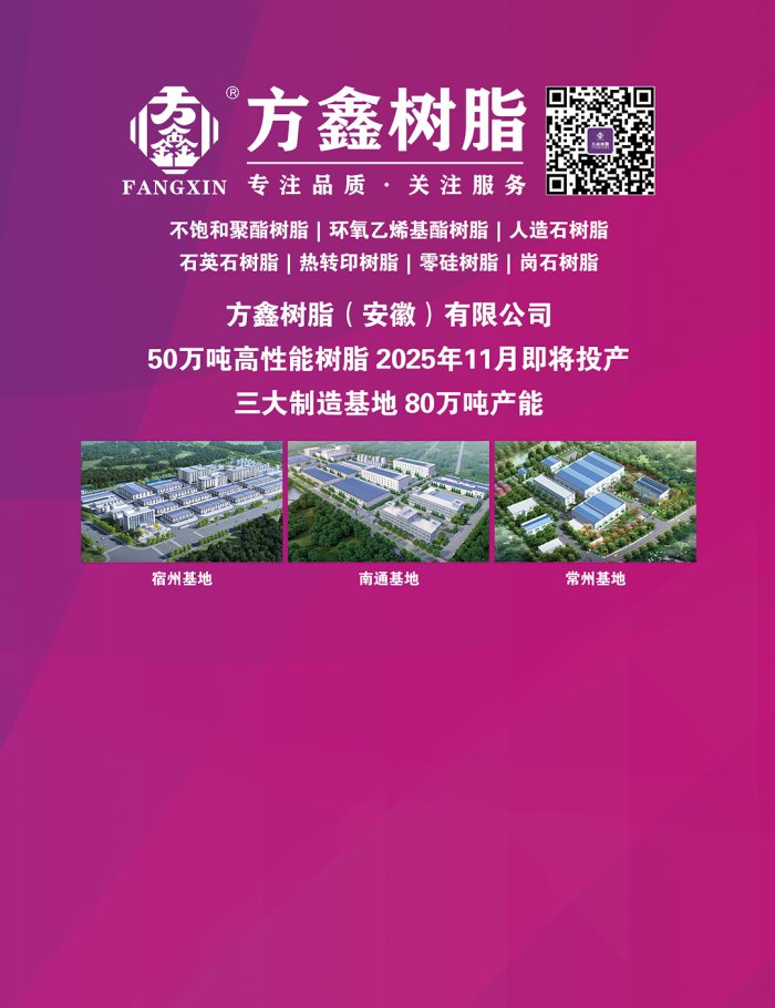 方鑫樹脂創建于1992年,注冊資本5.56億元,固定資產超15億元,是一家專業從事研發、生產、銷售不飽和聚酯樹脂、乙烯基酯樹脂、醇酸樹脂、丙烯酸樹脂、水性樹脂、彩色膠衣、色漿等產品的民營股份制企業。企業下轄方鑫樹脂(安徽)有限公司、江蘇賽鑫樹脂有限公司、南通方鑫化工有限公司。