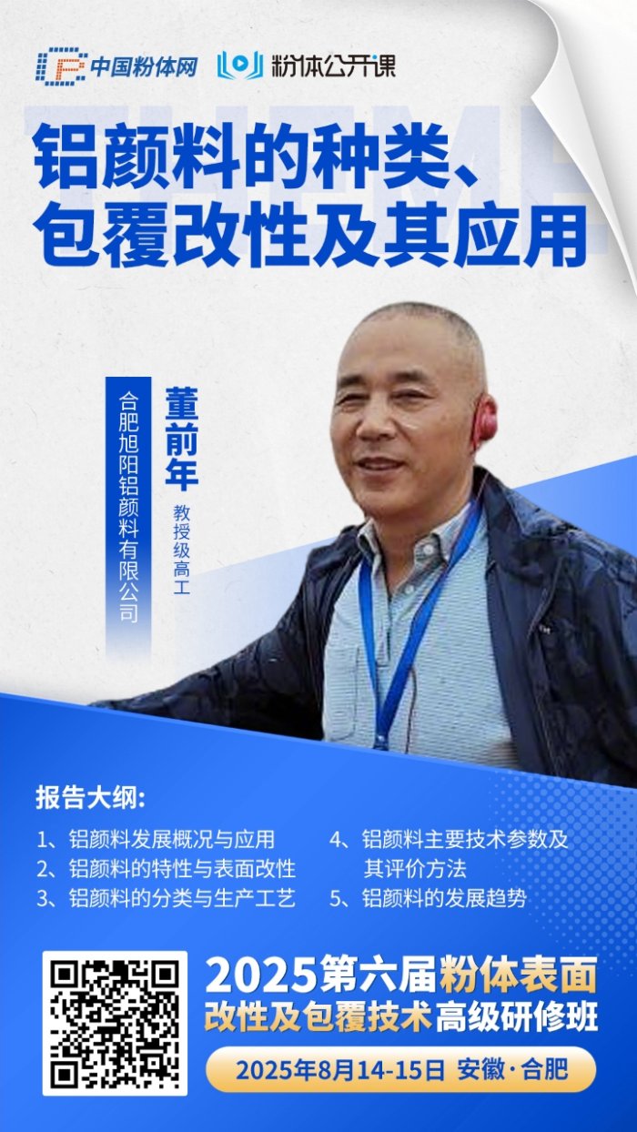 中國粉體網訊 為推動粉體表面改性及包覆技術發展,促進產學研交流合作,中國粉體網粉體公開課將于2025年8月14-15號,在安徽省合肥市舉辦“2025第六屆粉體表面改性及包覆技術高級研修班”,廣東泛瑞新材料有限公司邀您一同參加!