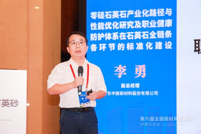 廣東中旗新材料科技股份有限公司副總經理李勇作《零硅石英石產業化路徑與性能優化研究及職業健康防護體系在石英石全鏈條各環節的標準化建設》報告