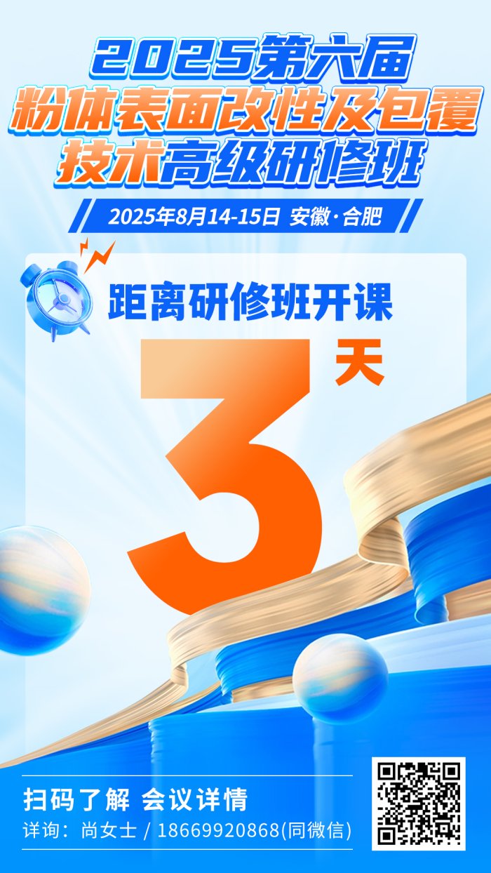 中國粉體網訊 為推動粉體表面改性及包覆技術發展,促進產學研交流合作,中國粉體網粉體公開課將于2025年8月14-15號,在安徽省合肥市舉辦“2025第六屆粉體表面改性及包覆技術高級研修班”,江蘇精研科技股份有限公司邀您一同參加!