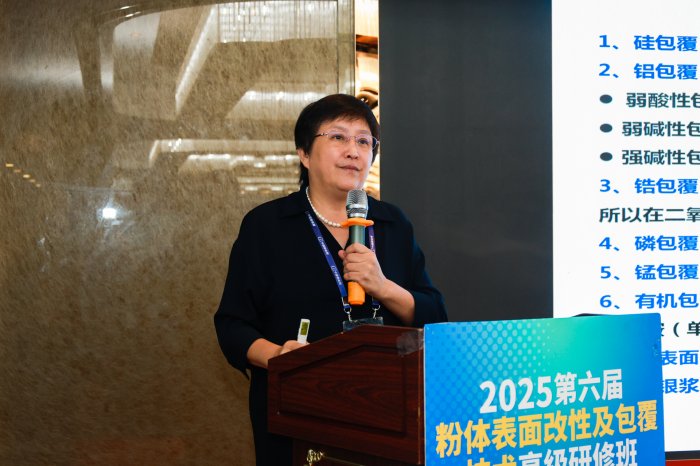 崔愛莉教授首先深入闡述了粉體表面包覆的基礎理論;隨后詳細介紹了涵蓋硅、鋁、鋯、錳、鉻(錫)等多種無機材料以及有機材料的包覆工藝;最后,重點講解了評價包覆效果的關鍵檢測方法,包括透射電鏡(TEM)、掃描電鏡及其能譜分析(SEM-EDS)、X射線熒光光譜(XRF)等表征技術,為精準調控粉體表面包覆層、優化材料性能提供了堅實的理論依據和實用的工藝與檢測指導。