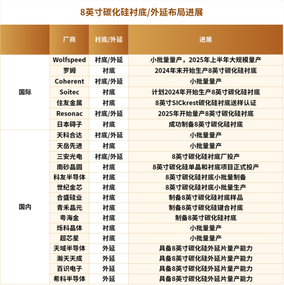 在產品尺寸上,相比6英寸SiC市場,8英寸更是碳化硅產業的未來增長點,國廠商也在加速布局。