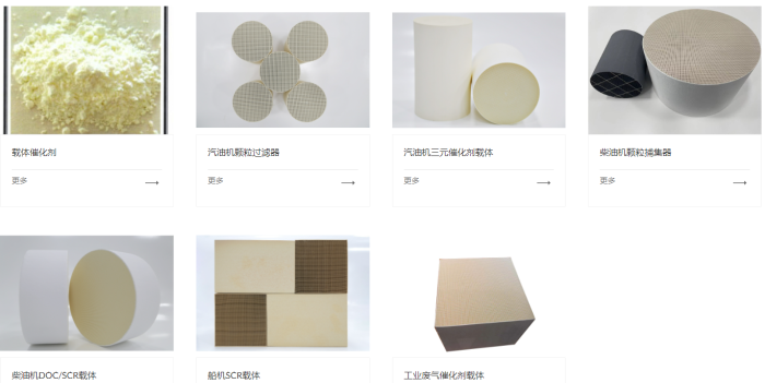 主要產品:氧化性催化轉化器載體、選擇性催化還原載體、三元催化轉化器載體、顆粒捕捉器、鈰鋯固溶體、分子篩