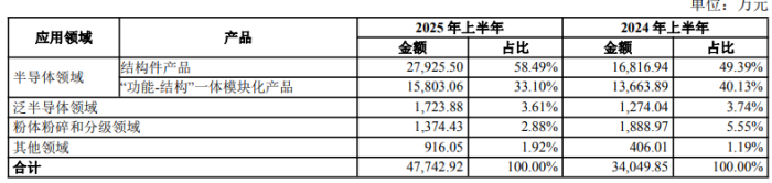 此外,2025年上半年,受國內(nèi)消費(fèi)電子行業(yè)和光伏產(chǎn)業(yè)溫和復(fù)蘇的影響,公司來自顯示面板、LED和光伏等其他泛半導(dǎo)體的結(jié)構(gòu)件產(chǎn)品的收入有所上升。
