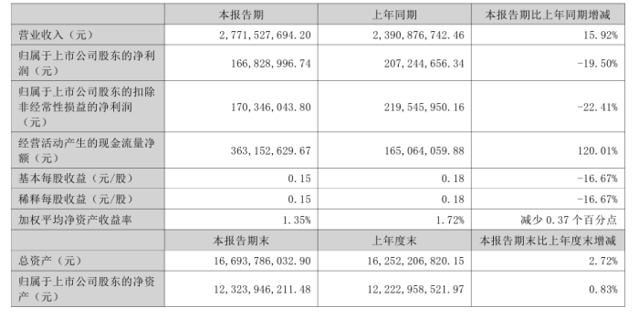 報告期實現(xiàn)營業(yè)收入17.05億元,同比增長12.71%,歸屬上市公司股東的凈利潤3789.44萬元 , 同比減少31.38%;扣非歸母凈利潤為2385萬元,同比下降26.8%。