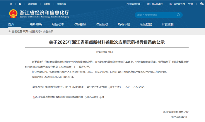 中國粉體網訊 近日,浙江省經濟和信息化廳正式發布《重點新材料首批次應用示范指導目錄(2025年版)》,目錄中涉及高純石英砂、高純石英材料、大硅片半導體級合成石英坩堝等材料及相關性能要求。