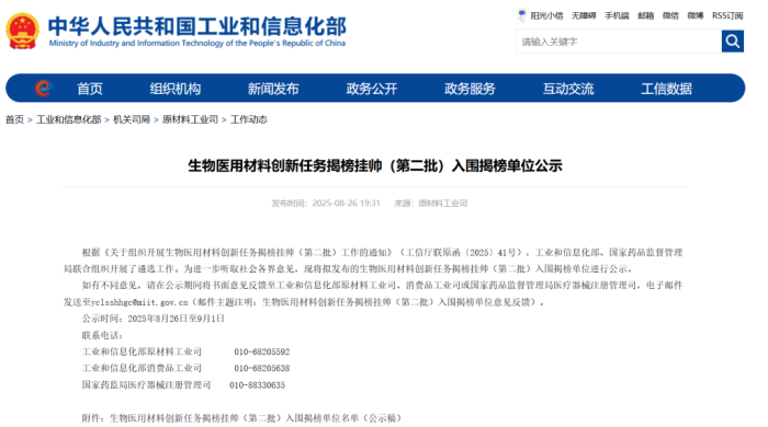 日前,工信部發布了《生物醫用材料創新任務揭榜掛帥(第二批)入圍揭榜單位公示》。其中“3D打印氧化鋯陶瓷墨水”和“氮化硅陶瓷”兩項先進陶瓷材料項目入圍。