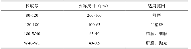 金剛石磨粒硬度高,耐磨性好,在磨削加工的過程中起主要磨削作用,負責(zé)被加工工件的材料去除。陶瓷結(jié)合劑金剛石砂輪的主磨料選用低品級、脆性金剛石磨粒為主,由于金剛石磨粒的粒度直接決定被加工工件的表面粗糙度、表面質(zhì)量和磨削效率,因此金剛石磨粒粒度的選取至關(guān)重要。金剛石磨粒粒度的選取原則是在滿足加工要求的前提下盡量選取粗粒度的磨粒,以達到提高磨削效率和減小砂輪損耗的目的。