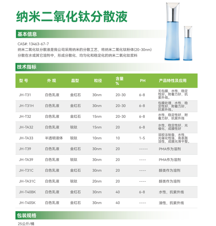 粒徑均勻,分散性好,不團(tuán)聚,藍(lán)相好。無(wú)毒,屏蔽紫外線能力和優(yōu)異的透明性等等。