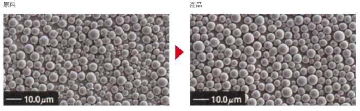 通過粉碎機(jī)及分級(jí)機(jī)加工得到的粉體,不僅被用于制作面粉、面包粉等日常食品,還廣泛應(yīng)用于液晶電視、顯示器等家用電器,以及3D打印機(jī)的先進(jìn)材料中。以顯示器為例,其內(nèi)部需要由大小均勻的微小顆粒組成均勻的陣列,只有當(dāng)電流通過這些顆粒時(shí),才能呈現(xiàn)出高清晰度的圖像。近年來,隨著對(duì)電子材料、金屬粉體、無機(jī)功能粉體及高性能塑料需求的增加,日清制粉在上述諸多領(lǐng)域的分級(jí)精度獲得了客戶的高度評(píng)價(jià)。