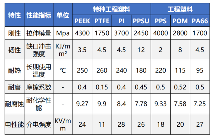 PEEK材料全稱為聚醚醚酮,屬于特種工程塑料,最早由英國帝國化學公司在1978年研發。它在工程塑料領域堪稱金字塔尖的存在,性能全面且強悍,與普通金屬相比毫不遜色,對比其他塑料材料也優勢明顯。