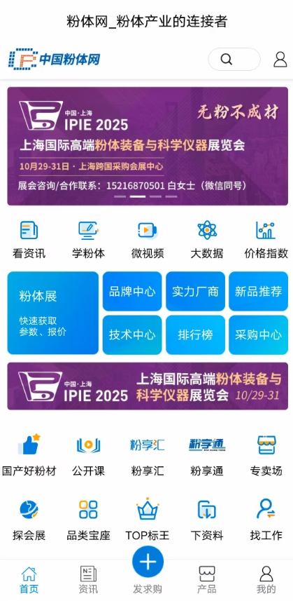 粉體網(wǎng)APP主要包含以下幾個部分:
