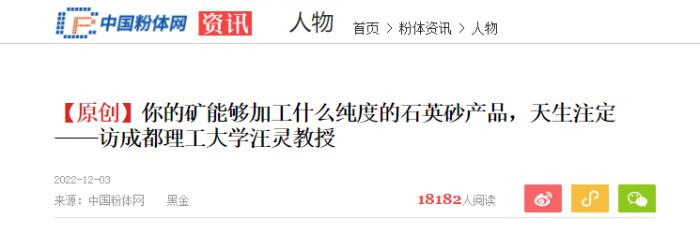 中國粉體網(wǎng)訊 2022年,在由中國粉體網(wǎng)主辦的“第六屆全國石英大會”上,成都理工大學(xué)汪靈教授首次以《石英的提純定律與高純石英原料品級劃分》為題做了大會報告,會后,汪靈教授接受了中國粉體網(wǎng)的獨家專訪,本次專訪以《你的礦能夠加工什么純度的石英砂產(chǎn)品,天生注定》為題一經(jīng)發(fā)布即引起業(yè)內(nèi)巨大反響。