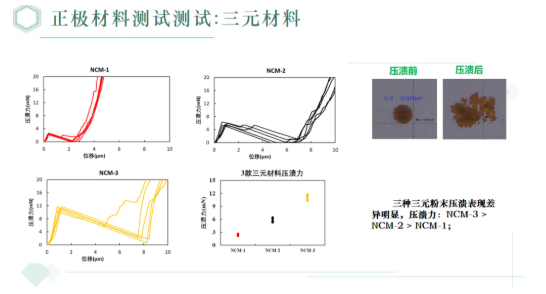 粉末微納力學性能測試儀:用于測試鋰離子電池相關粉體單顆粒的力學性能。設備采用倒置光學顯微鏡,最大放大倍數(shù)1200倍,最小支持4um的粉體顆粒檢測,可實時輸出應力應變曲線、壓潰點、抗壓強度等數(shù)據(jù)。