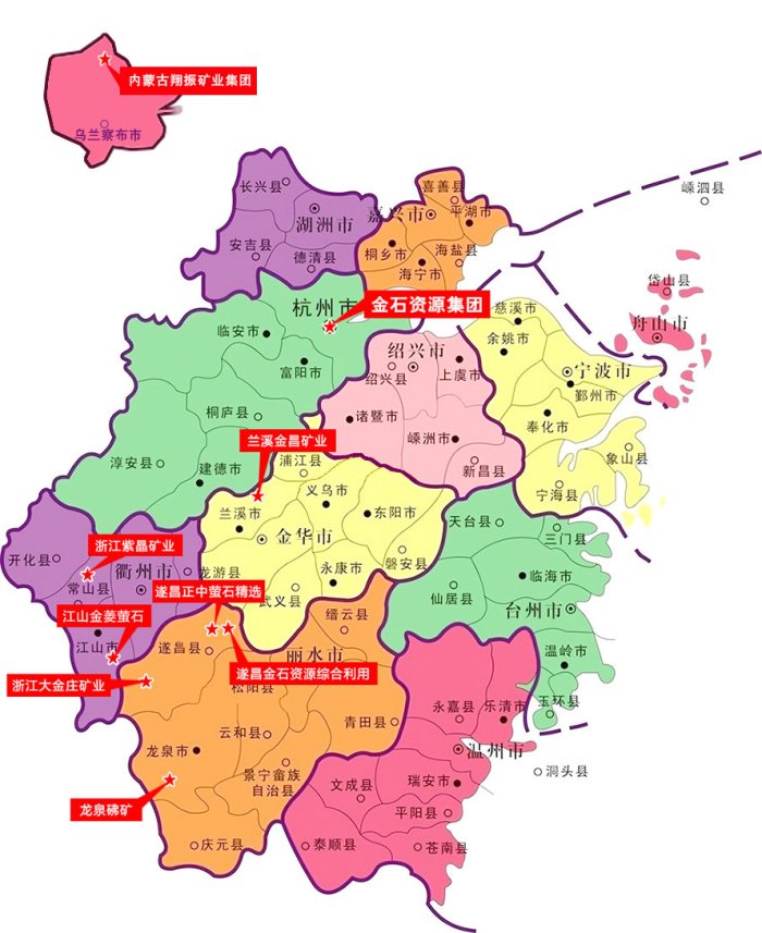 公司總部位于杭州,下屬20家全資或控股子公司,主要位于浙江、安徽、江西以及內蒙古自治區。公司目前擁有已查明保有單一螢石資源儲量約2,700萬噸,與包鋼股份合作開發的伴共生螢石資源量1.3億噸,是我國螢石資源儲量、開采及生產加工規模遙遙領先的企業,也是我國非金屬礦采選行業第一家上市公司。