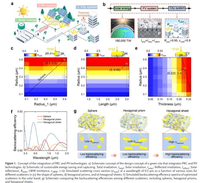 該材料通過將MIL-96衍生的多級結構氧化鋁片嵌入玻璃基質中,實現了近乎完美的太陽能反射率(>0.98)和高長波紅外發射率(0.93),在白天可實現最高7.4°C的低于環境溫度的冷卻效果,并在中午時段將光伏短路電流提升10.46 mA。全球模擬顯示,該材料有望通過降低冷卻需求與提升光伏輸出,實現14.3億噸的二氧化碳減排,為建筑節能和可再生能源捕獲提供了創新解決方案。