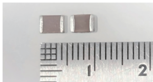同尺寸全固態電池與MLCC的外觀比較:MLCC(左),全固態電池(右)
