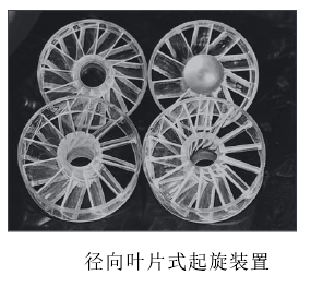 T.Bali等設(shè)計(jì)了一種起旋裝置,該起旋器裝置后部采用三根輪輻作為支撐,前部為葉片結(jié)構(gòu),前后兩部分通過中間細(xì)長軸連接,通過試驗(yàn)研究了其產(chǎn)生旋流場的衰減規(guī)律。