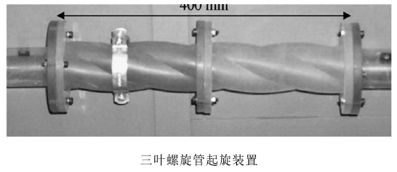 S.Fokeer等使用的起旋裝置整體呈麻花狀,通過管壁對氣流的約束作用形成旋流,兩端通過法蘭與輸送管道連接,可安裝在輸送管道的任意位置處。