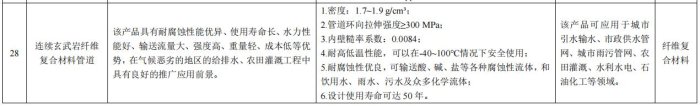 新版目錄共包含67項技術和產品。其中,多項非金屬礦物功能材料入選,推廣應用前景良好。包含:土壤污染治理礦物功能材料、連續玄武巖纖維復合材料管道、二氧化硅絕緣電纜、高性能耐火材料、高導熱金剛石金屬復合材料。另外,多項非金屬礦選礦、提純、應用技術入選,為推動建材產業綠色、高端、可持續性發展助力。包含:工業礦物精細分級提純工藝技術、非金屬礦物深度提純超導磁選裝備與技術、共伴生含氟礦物氟資源回收利用工藝技術、預水化膨潤土防滲卷材技術。