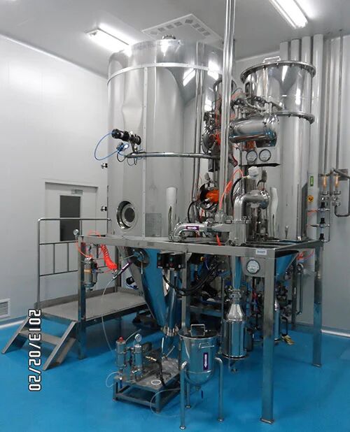 DP系列壓力噴霧干燥機組是采用壓力式霧化器借助壓力泵的壓力將溶液或漿狀的物料霧化成細微液滴,使表面積顯著增大.經與熱風進行充分熱交換得以快速干燥(十幾秒至幾十秒),從而得到粉體或細小顆粒產品的設備。