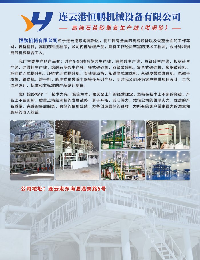 中國粉體網于將于2025年11月20-21號在江蘇省徐州市舉辦“ 2025(第九屆)全國石英大會暨展覽會 ”,連云港恒鵬機械設備有限公司邀您一同參加。
