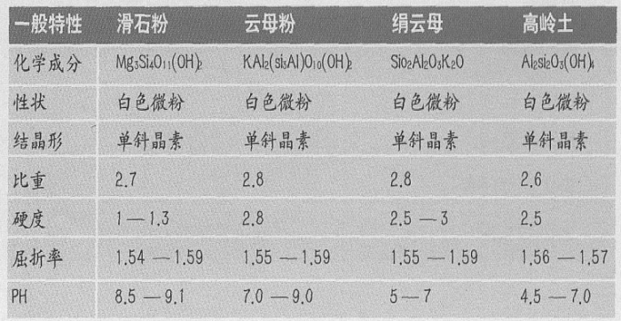 滑石粉:由硅酸鎂等組成,主要成分為3MgO·4SiO2·H2O。其粉末為白色微細結晶狀,層狀結構,有良好的潤滑感。我國滑石粉資源豐富,遼寧、山東、廣西、江西、青海等省份均盛產滑石粉,由于產地不同所以滑石粉的質地也有所不同,化妝品用滑石粉一般以白色、光澤、滑潤為優質;垡蚓哂猩珴蓾嵃、質地柔軟、延展性好、爽滑等優點主要用于制造香粉、粉餅、爽身粉等。