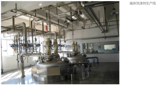 提供洗潔精、洗衣液、潔廁液等液洗生產線的成套設計。針對不同液體洗滌劑的生產特點進行工藝和設備設計,流程簡單、投資低、成本低。可實現人工操作、半自動化控制或自動化控制生產。