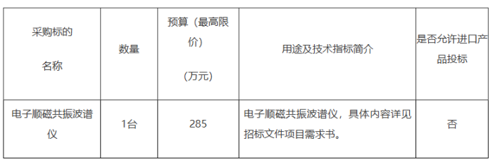 項目名稱:南開大學環境科學與工程學院電子順磁共振波譜儀采購項目