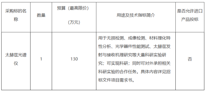 項(xiàng)目名稱:南開(kāi)大學(xué)材料科學(xué)與工程學(xué)院太赫茲光譜儀采購(gòu)項(xiàng)目