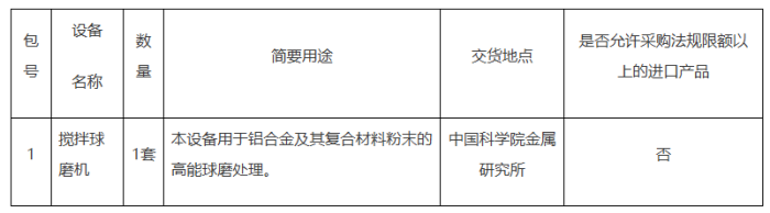 項目名稱:中國科學院金屬研究所攪拌球磨機采購項目