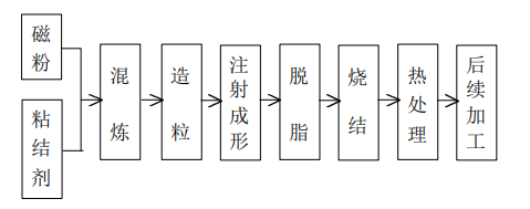 MIM技術制備永磁材料主要包括混煉、注射成形、脫脂和燒結四個關鍵環節:
