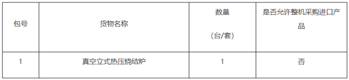 項目名稱:中國科學院寧波材料技術與工程研究所真空立式熱壓燒結爐采購項目