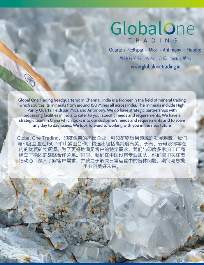 中國粉體網于將于2025年11月20-21號江蘇省徐州市舉辦“ 2025(第九屆)全國石英大會暨展覽會 ,Global One Trading邀您一同參加。