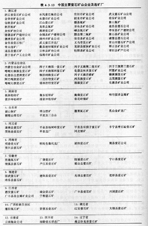 表 4.3.13中國(guó)主要螢石礦山企業(yè)及選礦廠