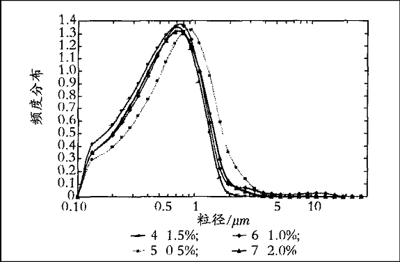 本文所述實例采用SYMPATECHELOS/OASIS德國新帕泰克干濕二合一激光粒度儀測量顆粒的粒度及粒度分布。是基于激光衍射的測試原理,測量范圍0.1~875μm。對粉末狀試樣,選用干法直接測試;對乳化液和懸浮液等液態試樣,選用濕法直接測試試樣中顆粒的最原始狀態的粒度及粒度分布。