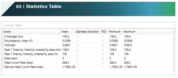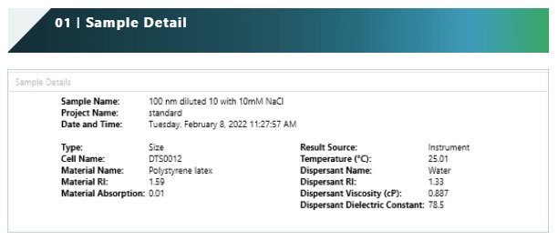 如下圖所示,Zetasizer的粒徑測試報告的形式分為三個部分: