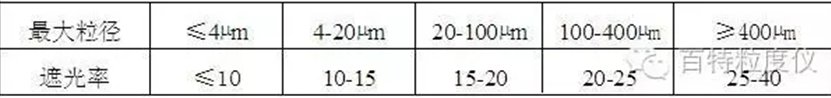 要保證重復性,對相同規格的樣品要固定遮光率值,這個值與樣品的粗細有關(見下表),就是細樣遮光率要小一些,粗樣的遮光率要大一些。
